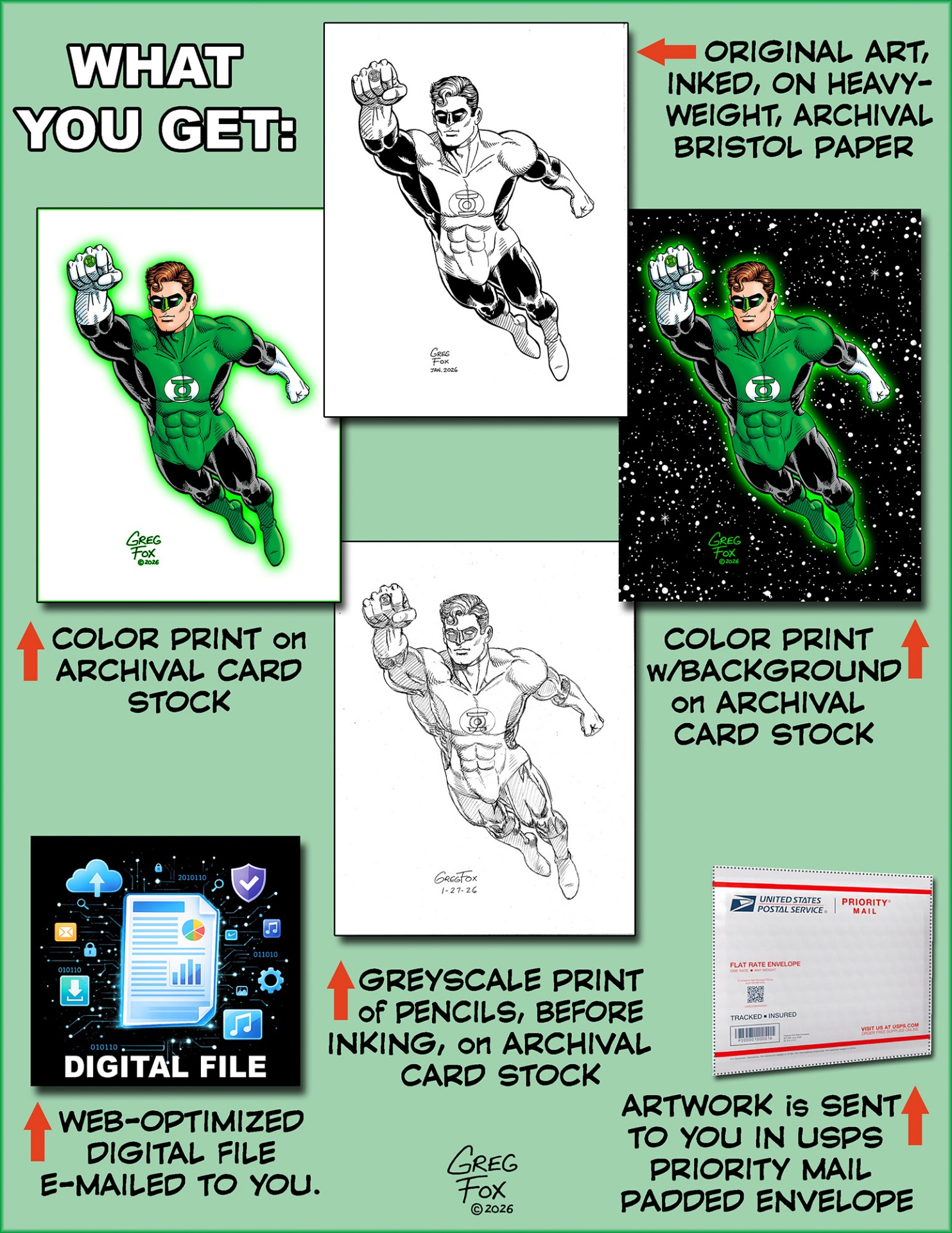 3. I grew up on DC & Marvel comic books. I have huge admiration for the artwork produced by the many artists who have worked for them, (I even worked for them for about five seconds). But virtually all of that artwork was produced in black & white, penciled and then inked. Even before Photoshop and modern color techniques existed, the color was never applied to the original artwork, (it was done on separate acetate sheets and then incorporated during the printing process). The original, black & white inked artwork remained in black & white, (which is what collectors of original comic book art collect!). When Photoshop arrived in the 1990s, it made the coloring process easier, (and higher quality). This is why the idea of applying color to the actual original artwork seems foreign to me. It's ingrained in me that the original art remain black & white and pristine. But that's just me. Perhaps you feel that way, too!